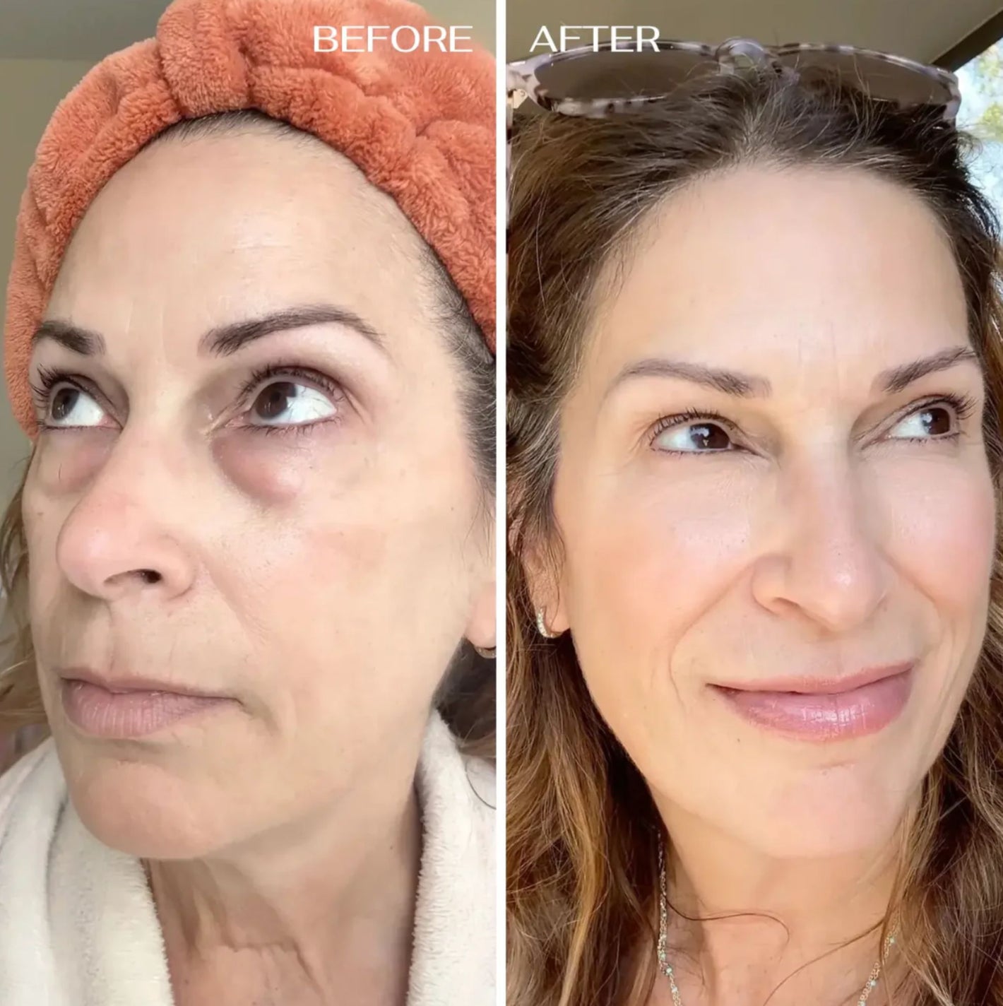 This formula combines deep hydration, collagen-supporting ingredients, and brightening antioxidants to target multiple signs of aging at once. By helping the skin retain moisture and improving elasticity, it can soften the appearance of fine lines and wrinkles. Its soothing, nourishing base also supports healthier circulation around the eyes, which may reduce puffiness and under-eye bags. Antioxidants like vitamin C further help brighten dull or tired skin, giving the face a more radiant, refreshed look.