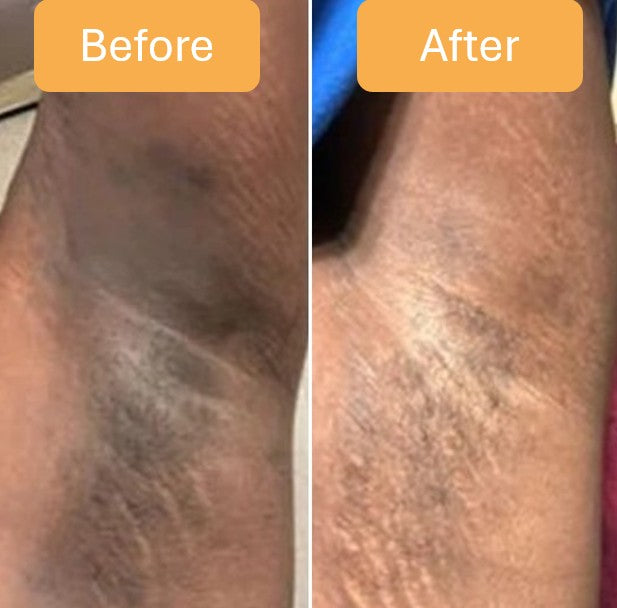 “As a skincare professional, I often see patients frustrated with dark patches under the arms, on the neck, and in intimate areas. These areas commonly develop pigmentation from friction, shaving, and buildup. A gentle chemical exfoliant like this Kojic + Turmeric Body Peel Spray can be very effective. Its formula helps lift dead skin, reduce discoloration, and improve overall smoothness without harsh scrubbing. For many people, this type of controlled exfoliation leads to a more even, brighter skin tone and improved confidence in their skin’s appearance.”