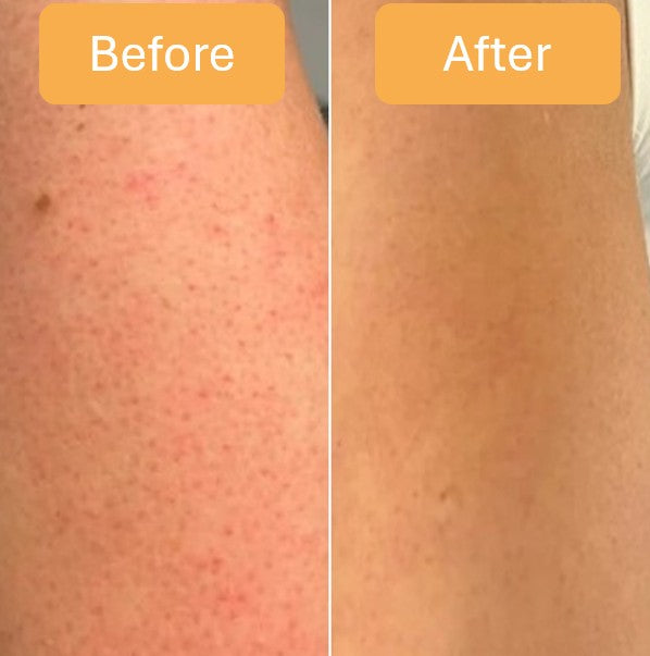 - Smooths rough, bumpy “KP” on arms, thighs & back of thighs